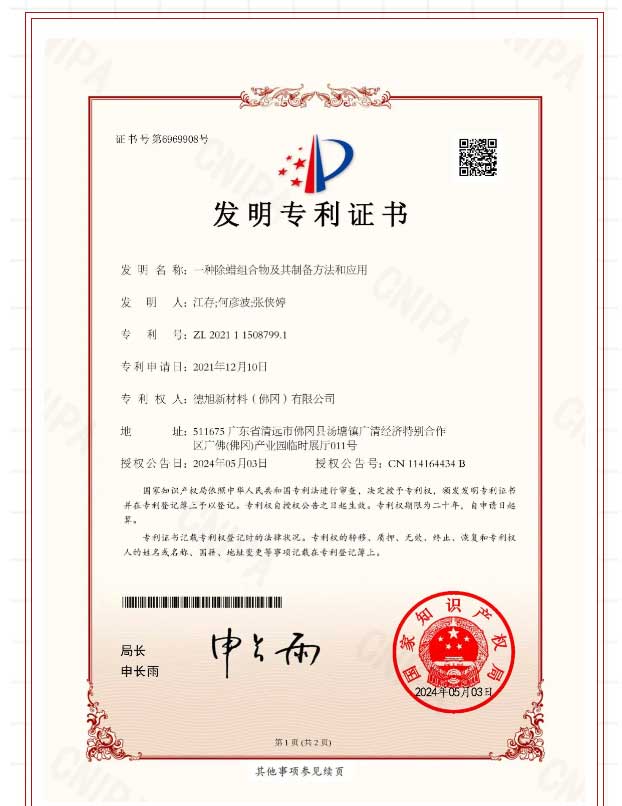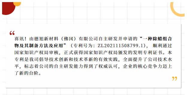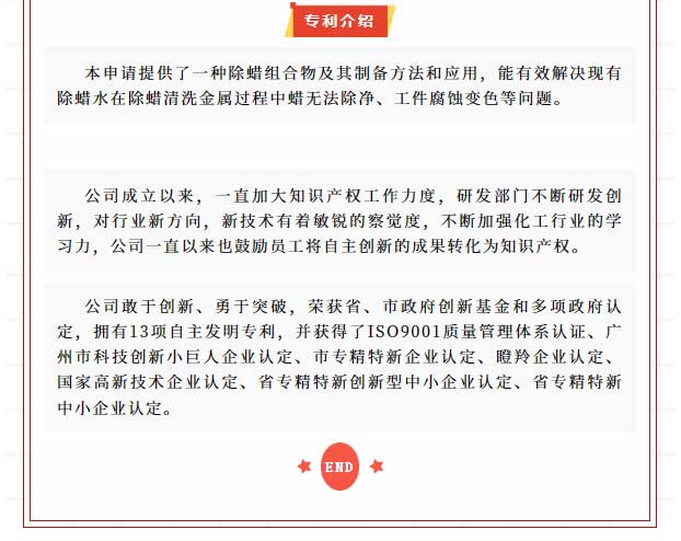 喜信!強烈熱鬧慶賀我司取得發現專利受權--一種除蠟組合物及其制備方式及利用